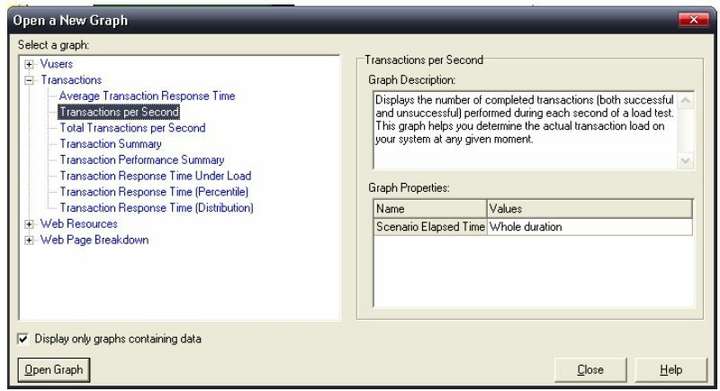 ① 单击“Mercury LoadRunner Analyze”主窗口中的“Graph”菜单,选择“Add Graph”,你将看到“Open a New Graph”对话框。如下图所示: