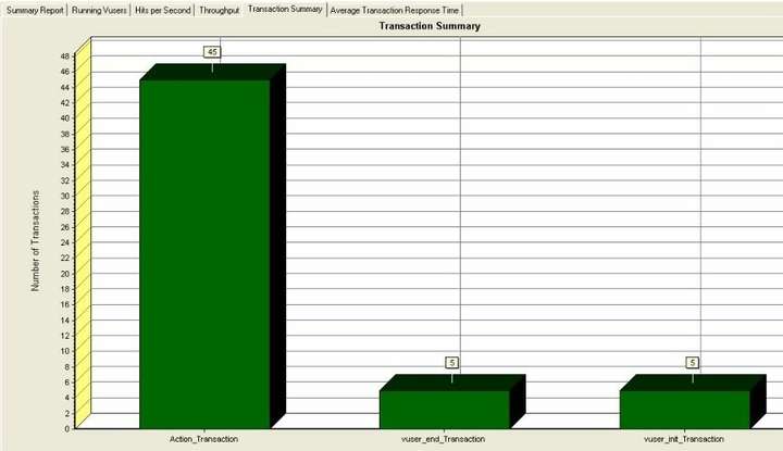 然后,通过“Mercury Load Runner Analyze”,我们将获得当前测试项目自动统计出来的各项测试结果数据。例如,Transaction Summary、Average Transaction Response Time等。